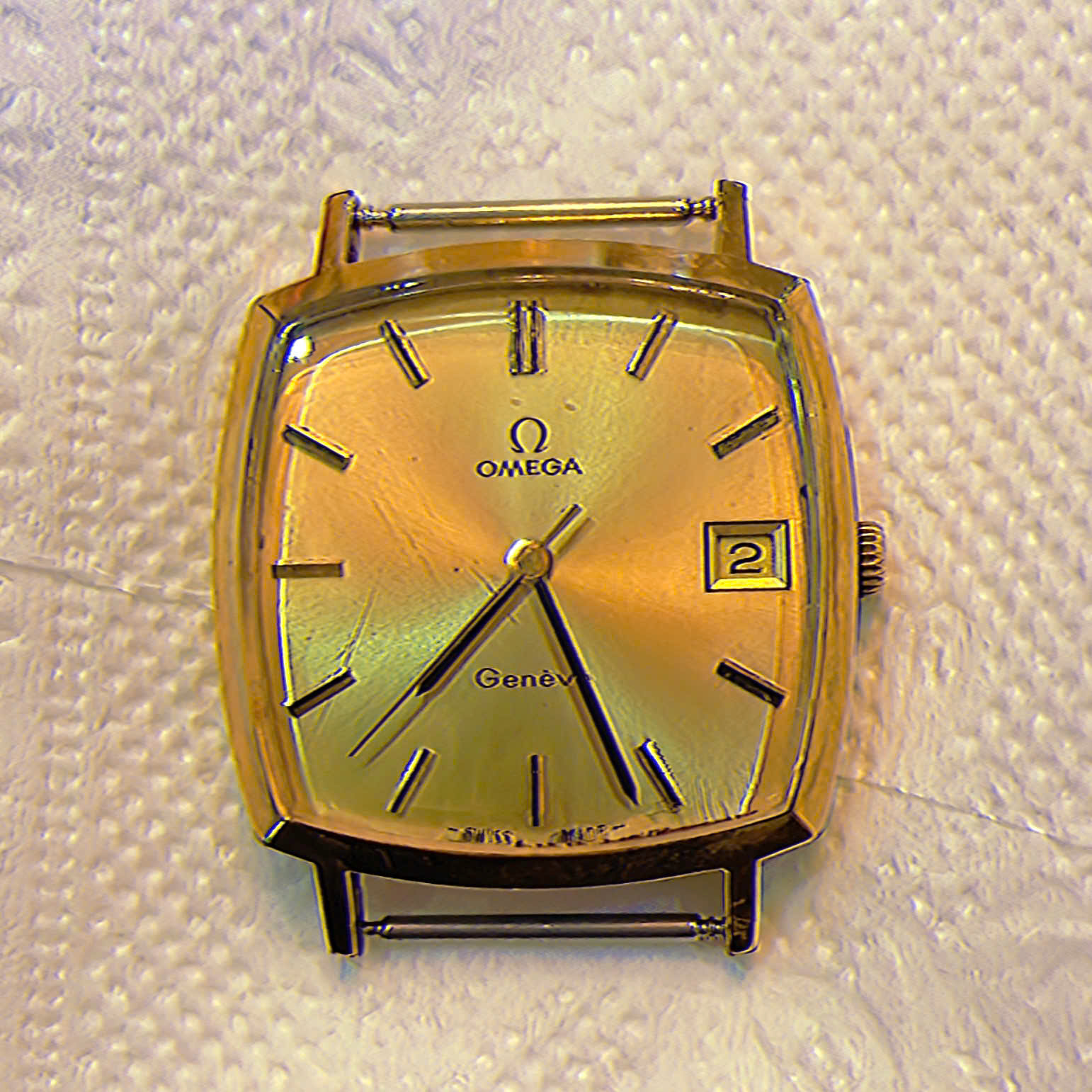 Đồng hồ cổ Omega Geneve lên dây lắc kê vàng 18k chính hãng thụy Sĩ với Mặt số zin 3 kim 1 lịch kết hợp với cọc số nổi rất đẹp.